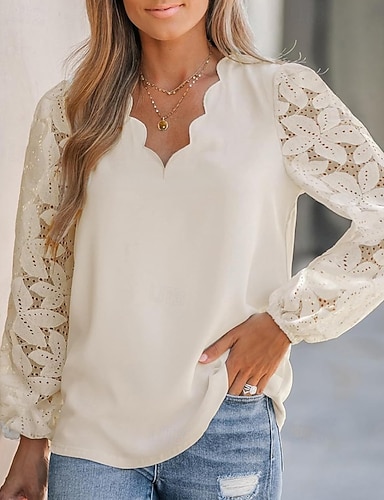 חולצות תחרה אלגנטיות לנשים עם חריצים בלייק אופנה מודרנית צבעים קז'ואל רגילות עם שרוול ארוך צוואר V מתאימות ליום-יום סוף שבוע רומנטיות קטנות חופשת קיץ לבוש חגים שחור אפור בהיר בז' סתיו