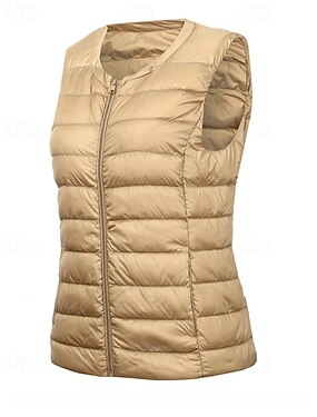 בגדי ריקוד נשים ז'קט פאפר אפוד פאפר ז'קט מרופד עמיד למים נוח רוכסן כיס יום יומי אחיד חופשה רחוב קזו'אל לבוש יומיומי רוכסן רגיל ללא צווארון רגיל ללא שרוולים הלבשה עליונה שחור חום קפה אביב סתיו