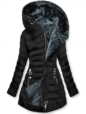 בגדי ריקוד נשים מעיל חורף בלשית שמור על חום הגוף נוח רוכסן כיס יום יומי אחיד חופשה לבוש יומיומי ליציאה סוף שבוע ארוך עם קפוצ'ון רגיל שרוול ארוך הלבשה עליונה שחור לבן יין סתיו חורף