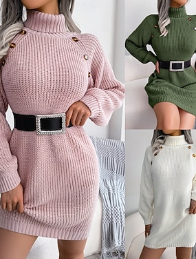 בגדי ריקוד נשים שמלת מיני שמלת סוודר מודרני חופשה חגים ליציאה רגיל אחיד שרוול ארוך גולף לבן ורוד מסמיק ירוק צבא סתיו חורף