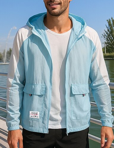 בגדי ריקוד גברים ג'קט לריצה מעיל חוץ כיס מיקוד מלא שרוול ארוך בגדי שטח אתלטי קולור בלוק הגנה מפני השמש קל משקל נושם טניס גולף ריצה בגדי ספורט לבוש אקטיבי כחול סקיי אפור בהיר