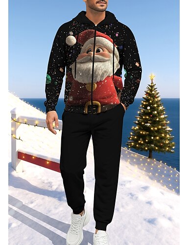 חג המולד בגדי ריקוד גברים קפוצ'ון אימונית קפוצ'ון עם רוכסן שרוך כיסים מכנסיים קפוצ'ון סווטשירט סתיו אדום ושחור כושר אמון אגבי כדורסל בג'י שרוול ארוך ספורט לבוש אקטיבי סטרצ'י (נמתח) רגיל