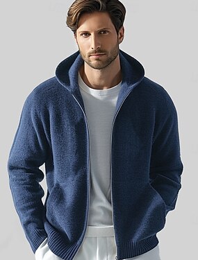 בגדי ריקוד גברים סוודר רוכסן לִסְרוֹג רוכסן צבע אחיד עם קפוצ'ון סריגים אלגנטית בית הספר הדרכה ביגוד בישוף סתיו חורף שחור לבן S M L