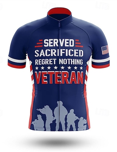 בגדי ריקוד גברים חולצת ג'רסי לרכיבה Soldier יום העצמאות דגל לאומי שרוולים קצרים אופנייים טי טי ג'רזי צמרות עם 3 כיסים אחוריים רכיבת הרים רכיבת כביש ייבוש מהיר רצועות מחזירי אור פתילת לחות נושם ספורט