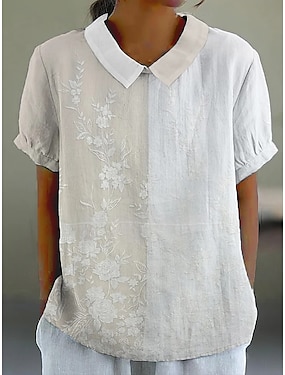 בגדי ריקוד נשים חולצה פרחוני יומי יום יומי שרוולים קצרים צווארון חולצה חולצות רגילות יומי חגים כפתורים דפוס לבן קיץ אביב