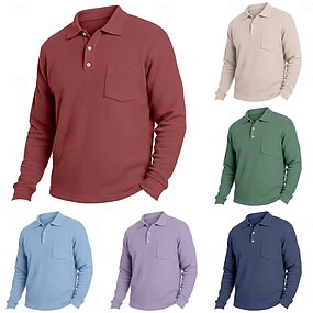 בגדי ריקוד גברים חולצות פולו וופל חולצות פולו גולף עֵסֶק קזו'אל דש קלאסי שרוול ארוך אופנתי בסיסי צבע אחיד כיס סתיו חורף כל העונות רגיל לבן כחול בהיר אודם כחול נייבי סגול תלתן חולצות פולו וופל
