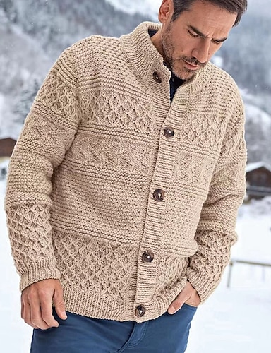 בגדי ריקוד גברים סוודר סוודר קרדיגן מצולע לִסְרוֹג רגיל סרוג אחיד צווארון עומד(סיני) חימומים מודרני עכשווי לבוש יומיומי ליציאה ביגוד חורף תלתן M L XL