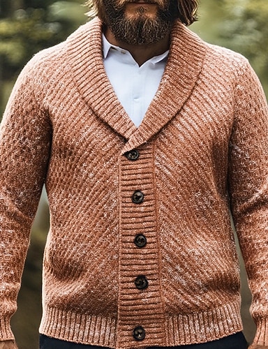 בגדי ריקוד גברים סוודר קרדיגן סוודר קצוץ סוודר סרוג מצולע לִסְרוֹג חולצות רגילות כפתורים אחיד דש שאל אופנתי קלסי חופשה לבוש יומיומי ביגוד סתיו חורף כחול נייבי חום M L XL