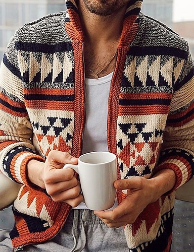 בגדי ריקוד גברים סוודר קרדיגן סוודר האי הוגן סוודר רוכסן ז'קט סוודר לִסְרוֹג כפתורים סרוג גיאומטרי צווארון חולצה יום יומי ביגוד סתיו חורף אודם M L XL