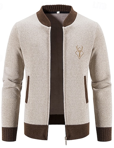 בגדי ריקוד גברים סוודר קרדיגן סוודר קצוץ סוודר רוכסן סוודר סרוג מצולע לִסְרוֹג חולצות רגילות כיס אחיד עומד אופנתי קלסי חופשה לבוש יומיומי ביגוד סתיו חורף שחור בז' M L XL