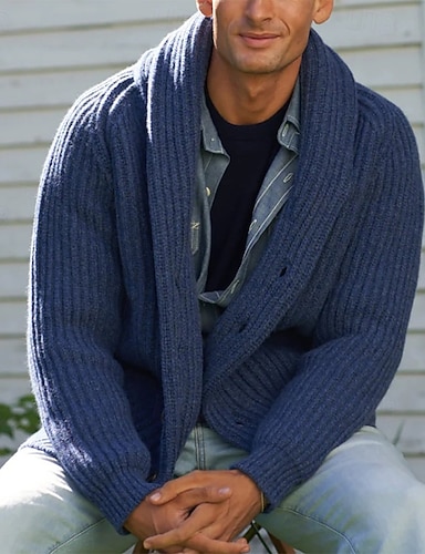 סוודר קרדיגן לגברים סוודר סתיו מצולע צווארון צעיף רגיל רגיל חימום לבוש יומיומי מודרני לבוש יומיומי יציאה ביגוד סתיו וחורף כחול שמיים כחול m l xl