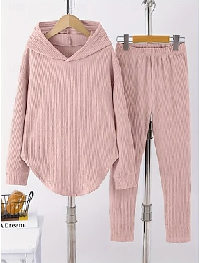 בגדי ריקוד נשים אופנתי סגנון רחוב יומי קפוצ'ון ערכות מכנסיים שרוול ארוך עם קפוצ'ון צבע אחיד דפוס קזו'אל יומי שחור לבן ורוד מסמיק סתיו מונח בצורה רפויה