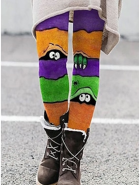 מכנסי ליגינג לנשים לחג ההלוואין אופנה וינטג' מכנסיים ארוכים עם מותן גבוהה דפוס גרפיקה תרמית מחממת רכים נושמים גמישים חוץ שחור כתום ירוק בז' אביב סתיו רזה