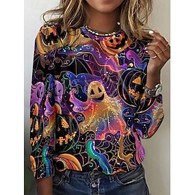חג ליל כל הקדושים בגדי ריקוד נשים חולצה גראפי וינטאג' יום יומי מצחיק שרוול ארוך צווארון עגול קצר חולצות ארוכות יומי דפוס שחור לבן צהוב כתום קיץ אביב סתיו