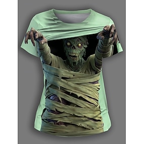 בגדי ריקוד נשים חולצה גראפי חג ליל כל הקדושים יומי יום יומי חצי שרוול צווארון V חולצות רגילות יומי חגים דפוס חאקי קיץ אביב סתיו