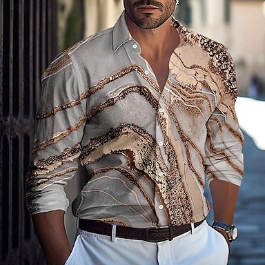 בגדי ריקוד גברים גיאומטרי שיש אמנות נוזלית מופשטת חולצה חולצה עם כפתורים שרוול ארוך אופנה קז'ואל חופשה יומי לבוש רחוב אביב סתיו צווארון מתקפל הדפסת תלת מימד חולצות צווארון כיס אחד קדמי פול