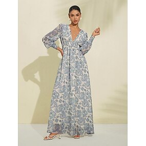 שמלת שיפון לנשים שמלת נדנדה שמלה רשמית שמלה רשמית הדפס פרחוני שמלת מקסי שמלה ארוכה שמלת מקסי אלגנטית מסיבה רשמית אורחת חתונה אורחת שרוול ארוך סתיו