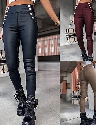 בגדי ריקוד נשים מכנסי עור חותלות אופנתי סגנון רחוב באורך מלא מותניים גבוהים אחיד נוח רך מיקרו-אלסטי בָּחוּץ רחוב בורדו שחור חאקי קיץ אביב סקיני