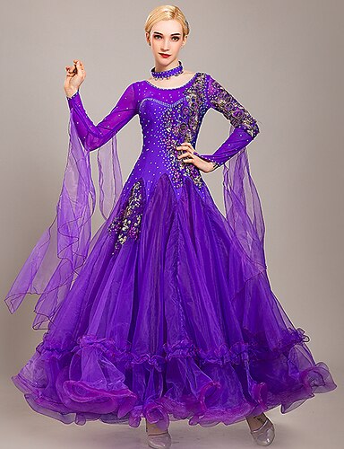ריקודים סלוניים שמלה ריקמה שחבור קריסטלים / אבנים נוצצות בגדי ריקוד נשים הצגה מפלגה שרוול ארוך ספנדקס אורגנזה