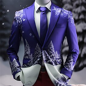 בגדי ריקוד גברים בלייזר מעיל חג מולד בָּחוּץ קזו'אל יום יומי קז'ואל בריטי סתיו חורף 100% פוליאסטר פתית שלג הדפסת תלת מימד כפתורים שמור על חום הגוף נוח חזה יחיד בְּלֵיזֶר שחור ירוק בהיר אודם סגול