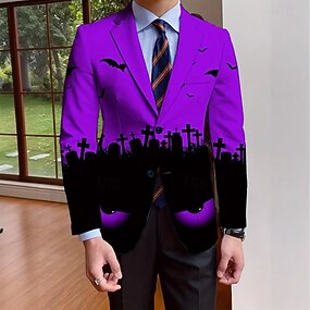 חג ליל כל הקדושים בגדי ריקוד גברים מעיל בלייזר בָּחוּץ רחוב פֶסטִיבָל יום יומי קז'ואל כל העונות 100% פוליאסטר עטלף הדפסת תלת מימד כפתורים נוח חזה יחיד בְּלֵיזֶר לבן סגול כתום