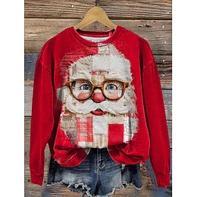 חולצת הווידו לסנטה קלאוס לנשים סווטשירט עם גרפיקה של סנטה אלגנטית חמה עם שרוולים ארוכים הכנת רגיל טופס הרחוב לבוש יומי במראה קז'ואל הדפסת פצגה בצבעים אדום אביב סתיו חורף