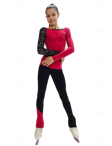 ז'קט החלקה אמנותית עם מכנסיים בגדי ריקוד נשים בנות החלקה על הקרח ג'קט מכנסיים לבן אדום סגול חור לאגודל ספנדקס לייקרה גמישות גבוהה הדרכה אימון תחרות ביגוד להחלקה על הקרח שמור על חום הגוף