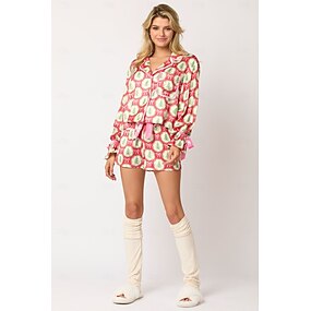 הלבשה תחתונה לנשים בייבי דול קשת סאטן עם צווארון V ללא שרוולים תחרה שקופה אדומה פרחונית בגדי לילה אינטימיים תלבושות אלגנטיות לבית