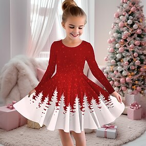 בנות ' תלת מימד עץ חג המולד פתית שלג שמלה שמלת פתית שלג שרוול ארוך הדפסת תלת מימד סתיו חורף חופשה ספורט וחוץ יומי סגנון חמוד יום יומי יפה ילדים 3-12 שנים שמלת קז'ואל שמלה עם כיווץ במותן מעל הברך רגיל