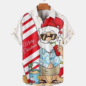 חג המולד גברים תחפושת חג המולד חולצות מודפסות חולצות סנטה קלאוס קז'ואל סתיו חיצוני ברחוב סתיו מפנה שרוול קצר אדום בורדו כהה נייבי s m l