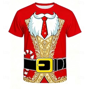 חג המולד בגדי ריקוד גברים סנטה קלאוס תחפושות חולצה קצרה שרוולים קצרים חולצה קצרה הדפסת תלת מימד צווארון עגול קצר חולצה יומי מעצב אומנותי חופשה מפלגה רחוב אודם פול תלתן כל העונות ביגוד S M L XL XXL