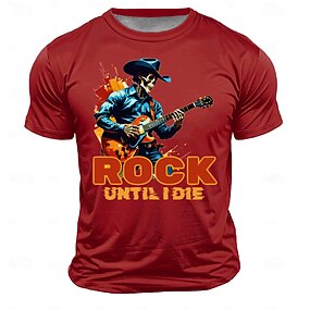 בגדי ריקוד גברים סלעים חולצה קצרה שרוולים קצרים חולצה קצרה הדפסת תלת מימד צווארון עגול קצר חולצה אופנתי בגדי ספורט ומנוחה רחוב ספורט חוץ יומי כחול אגם שחור לבן קיץ אביב ביגוד S M L XL XXL XXXL