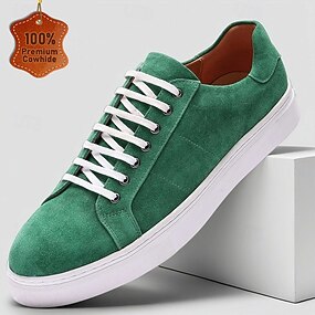 נעלי ספורט גברים ארוגים מעור ירוק עם עיצוב שרוכים - מסוגננות ונוחות ללבוש יומיומי