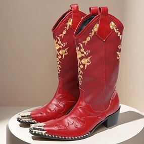 מגפי מערב אדומים רקומים לגברים - מגפי בוקרים נועזים לפסטיבלי מוזיקה, חתונות כפריות ומופעי רודיאו
