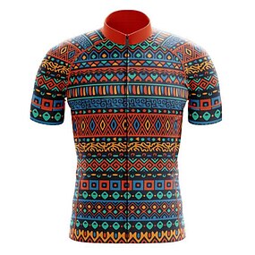בגדי ריקוד גברים חולצת ג'רסי לרכיבה גיאומטרי מצחיק שרוולים קצרים אופנייים ג'רזי צמרות עם 3 כיסים אחוריים רכיבת הרים רכיבת כביש ייבוש מהיר רצועות מחזירי אור כיס אחורי פתילת לחות ספורט שחור צהוב אדום