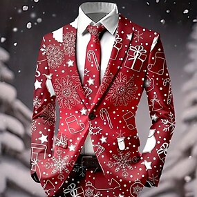 בגדי ריקוד גברים בלייזר מעיל חג מולד חופשה קזו'אל יום יומי קז'ואל יום יומי סתיו חורף 100% פוליאסטר פתית שלג הדפסת תלת מימד כפתורים שמור על חום הגוף נוח חזה יחיד בְּלֵיזֶר אדום 1 אדום 4 אדום 3