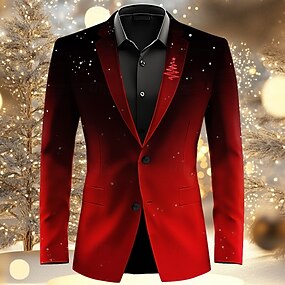 חג המולד בגדי ריקוד גברים Ombre כוכב מעיל ז'קט בלייזר נושם נוח אומנותי יום יומי בגדי ערב למסיבה יומי ערב השנה החדשה כפתורים הדפסת תלת מימד כיס מרובה סתיו חורף צווארון מתקפל שרוול ארוך שחור אודם פול