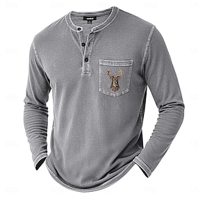 בגדי ריקוד גברים חיה צבי חולצת הנלי שרוול ארוך חולצה קצרה הדפסת תלת מימד הנלי חולצה רטרו\וינטאג' קאובוי קזו'אל יומי חגים שחור ירוק צבאי כחול כהה קיץ אביב סתיו ביגוד נורמלי S M L XL XXL XXXL