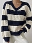 בגדי ריקוד נשים סוודר סגנון רחוב יום יומי פסים כבל צווארון V סרוג שרוול ארוך חולצות רגילות לִסְרוֹג יומי חגים ליציאה כחול ים סתיו חורף
