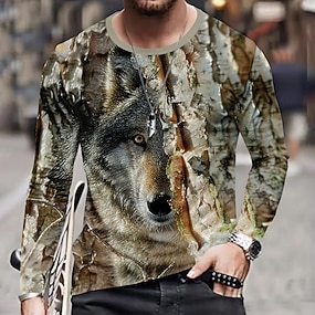 בגדי ריקוד גברים זאב להסוות חולצה קצרה שרוול ארוך חולצה קצרה הדפסת תלת מימד צווארון עגול קצר חולצה אופנתי חוץ רחוב ספורט חוץ ציד חום כהה חום בהיר חום קיץ אביב ביגוד S M L XL XXL XXXL