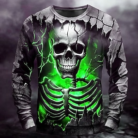 חג ליל כל הקדושים בגדי ריקוד גברים שלד תחפושות חולצה קצרה שרוול ארוך חולצה קצרה הדפסת תלת מימד צווארון עגול קצר חולצה אופנתי מוּגזָם רחוב קזו'אל יומי שחור 1 שחור 3 שחור 2 קיץ אביב סתיו ביגוד S M L XL