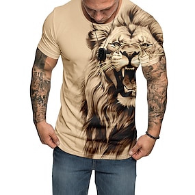 בגדי ריקוד גברים אריה מצחיק חולצה קצרה שרוולים קצרים חולצה קצרה הדפסת תלת מימד צווארון עגול קצר חולצה רטרו\וינטאג' יום יומי סגנון רחוב ספורט חוץ חגים ליציאה חום חאקי אביב קיץ ביגוד S M L XL 2XL 3XL