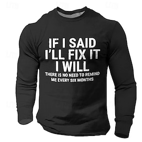 חולצת טי גרפית ארוכה לגברים - 'אם אמרתי שאתקן את זה אני אעשה את זה אין צורך להזכיר לי כל שישה חודשים' - הומור על מערכות יחסים