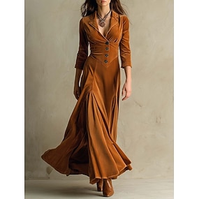 בגדי ריקוד נשים שמלת מקסי שמלה עם כיווץ במותן יום יומי יומי רזה אחיד שרוול ארוך צווארון V חום סתיו חורף