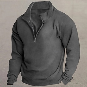 בגדי ריקוד גברים טרנינג סווטשירט פליז תעצור בצד סווטשירט עם רבע רוכסן שחור לבן יין אודם חאקי צווארון עומד(סיני) אחיד ספורט וחוץ קזו'אל יומי סגנון רחוב אתלטיקה אביב סתיו ביגוד קפוצ'ונים חולצות טריקו
