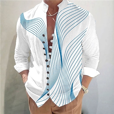 בגדי ריקוד גברים גיאומטרי קו חולצה חולצה עם כפתורים חולצת צווארון סטנד שרוול ארוך יום יומי בָּחוּץ חופשה יומי אביב סתיו צווארון מנדרינה רצועת צווארון הדפסת תלת מימד חולצה כמו פשתן