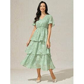 בגדי ריקוד נשים שמלה באורך הברך שמלת שכבות אלגנטית רשמי פרפר אורחת חתונה מסיבת קוקטייל רגיל אחיד שרוולים קצרים צווארון עגול קצר ירוק מרווה קיץ