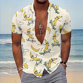 בגדי ריקוד גברים מצחיק בננה סקייטבורד חולצה חולצת הוואי חולצה עם כפתורים שרוולים קצרים הוואי חופשה חגים ביגוד חוף קיץ אביב צווארון מתקפל הדפסת תלת מימד חולצות צווארון חאקי בהיר בז'