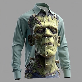 חג ליל כל הקדושים בגדי ריקוד גברים זומבים מחריד חולצה חולצה עם כפתורים שרוול ארוך סגנון גותי כהה חגים לבוש רחוב אביב סתיו צווארון מתקפל הדפסת תלת מימד חולצות צווארון כחול 1# פול