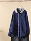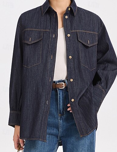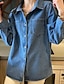 בגדי ריקוד נשים חולצה צבע אחיד אחיד וינטאג' מסוגנן יום יומי שרוול ארוך צווארון חולצה חולצות רגילות עבודה יומי ליציאה כפתורים כחול ג'ינס סתיו
